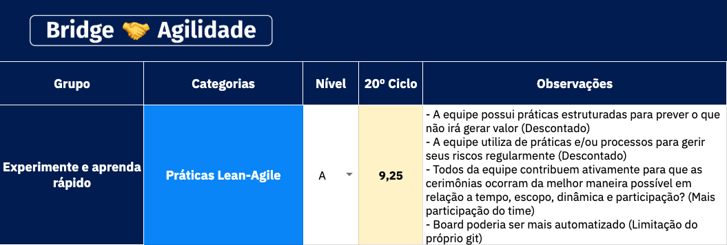 Agora você já conhece a ferramenta, o nosso processo de aplicação e encaminhamento de melhorias para o avanço constante de maturidade nas equipes ágeis de desenvolvimento do Laboratório Bridge.